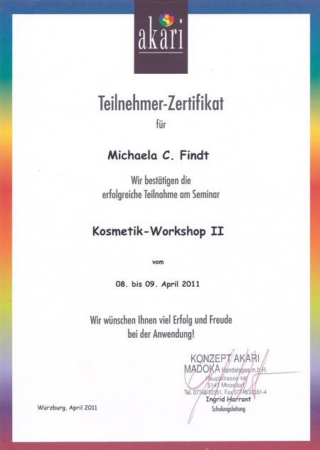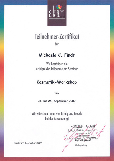 2004 besuchte ich mit viel Freude die Kosmetikschule Schäfer in Frankfurt an der Alten-Oper.